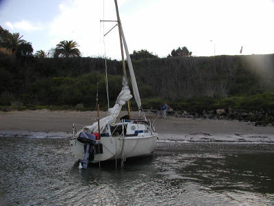 The keel had fallen of this boat and it flipped. They spent all night towing it back here