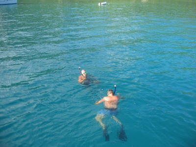 Grabbing a mooring ball. The Bitter End Yacht Club