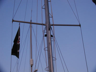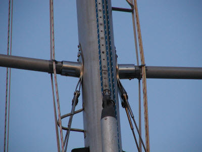 Great idea for keeping those lines off the mast. The lazy jacks mount to the back and spinnaker halyards in the front.